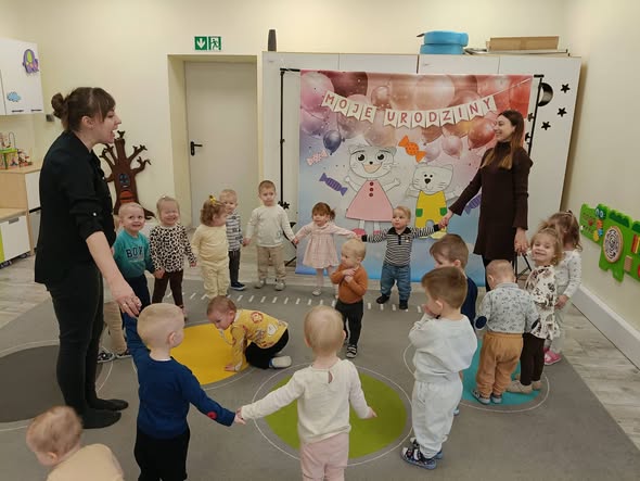 Miniony tydzień w żłobku Tuptuś był pełen radosnych wydarzeń i nowych doświadczeń 🎉😊. Świętowaliśmy urodzinki Liwii, składając jej serdeczne życzenia i wspólnie celebrując ten wyjątkowy dzień 🎂🥳. Podczas zabawy w kolory dzieci poznawały hiszpańskie słówka, ucząc się poprzez ruch i świetną zabawę 🎨. Dużo uśmiechu przyniósł także Dzień Naleśnika, kiedy Tuptusie mogły poczuć prawdziwie smakowitą atmosferę 🥞😋. Tydzień zakończyliśmy obchodami Dnia Radia, odkrywając świat dźwięków i muzyki 🎶📻.