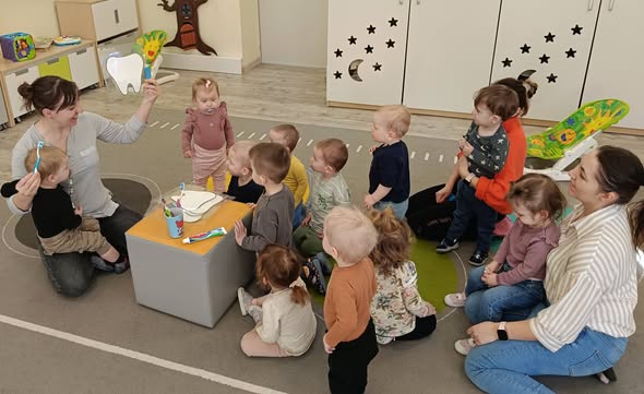 Miniony tydzień w żłobku Tuptuś był pełen ciekawych zajęć i radosnej zabawy 😊✨. Podczas zajęć plastycznych dzieci tworzyły kolorowe prace, rozwijając swoją wyobraźnię i sprawność manualną 🎨🖌️. Na zajęciach językowych pożegnaliśmy zimę słowami „Adiós Invierno”, poznając nowe hiszpańskie zwroty ❄️. Obchodziliśmy także Dzień Dentysty, rozmawiając o tym, jak ważna jest higiena zębów i dbanie o zdrowy uśmiech 🦷😁. Tydzień zakończyła rytmika pełna muzyki, tańca i świetnej zabawy 🎶💃🕺.