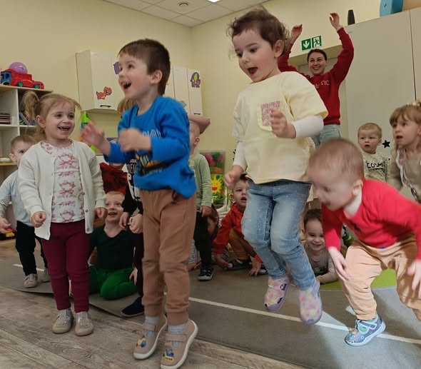W tym tygodniu w żłobku Tuptuś dzieci uczestniczyły w zajęciach z języka hiszpańskiego 🗣️, poznając nowe słówka poprzez zabawę. Nie zabrakło ruchu podczas gimnastyki u Tuptusiów 🤸♀️😊 oraz przechodzenia przez drogę sensoryczną 👣🌈, która dostarczyła wielu ciekawych wrażeń. Radosnym wydarzeniem były urodzinki Oskarka 🎂🎉, które świętowaliśmy wspólnie w miłej atmosferze. Dzieci chętnie brały udział w zajęciach z rytmiki 🎶🥁, rozwijając poczucie rytmu i koordynację. To był aktywny i pełen uśmiechu tydzień 😊🌟.