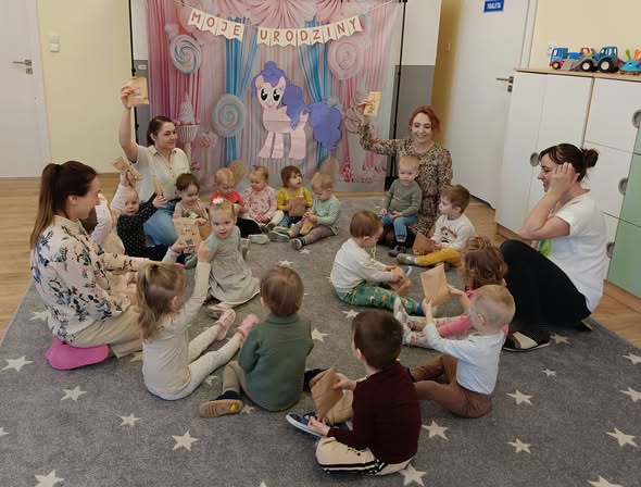 Miniony tydzień w żłobku Tuptuś upłynął w bardzo radosnej atmosferze 😊☀️. Dzieci chętnie spędzały czas na zabawach na świeżym powietrzu, ciesząc się ruchem i wspólną aktywnością 🌳⚽. Na języku angielskim poznawaliśmy części ciała: eyes, nose, ears i mouth, ucząc się poprzez zabawę 👀👃👂👄. Obchodziliśmy także Dzień Piekarza i Cukiernika, a z okazji Dnia Kobiet Tuptusie odwiedziły słodką Krainę Słodkości 🍰🍩💐. Wyjątkowym momentem było świętowanie trzecich urodzinek Zosi, które przyniosły wiele uśmiechów i wspólne „Sto lat” 🎂🎈🥳.