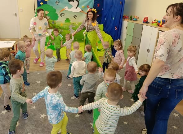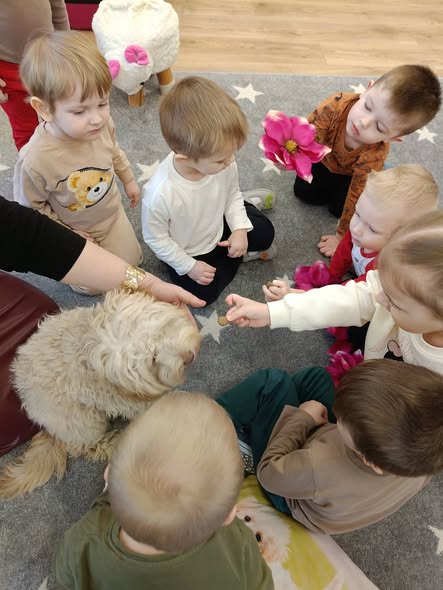 Miniony tydzień w żłobku Tuptuś upłynął pod znakiem przygotowań do wiosny i radosnego oczekiwania na cieplejsze dni 🌸🌷. Dzieci przechodziły drogę sensoryczną, ucząc się kolorów po hiszpańsku poprzez zabawę i ruch 🎨. Nie zabrakło także uwielbianej dogoterapii, która dostarczyła Tuptusiom wiele uśmiechu i ciepła 🐶❤️. Z radością powitaliśmy wiosnę, ciesząc się wspólnymi zabawami i wiosenną atmosferą ☀️🌼. Wyjątkowym momentem było świętowanie drugich urodzinek Marcelinki, pełne radości, życzeń i uśmiechów 🎂🎈🥳.