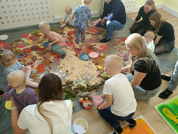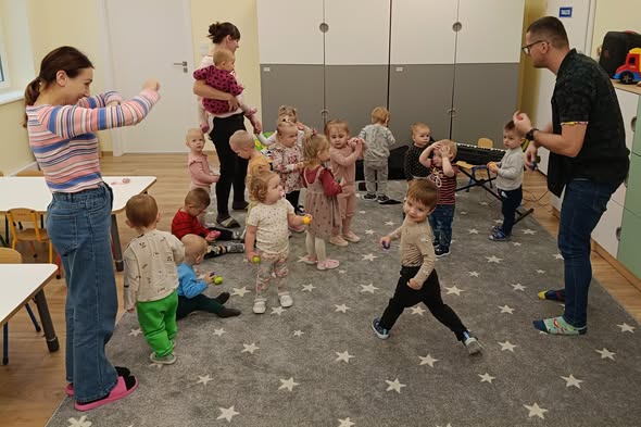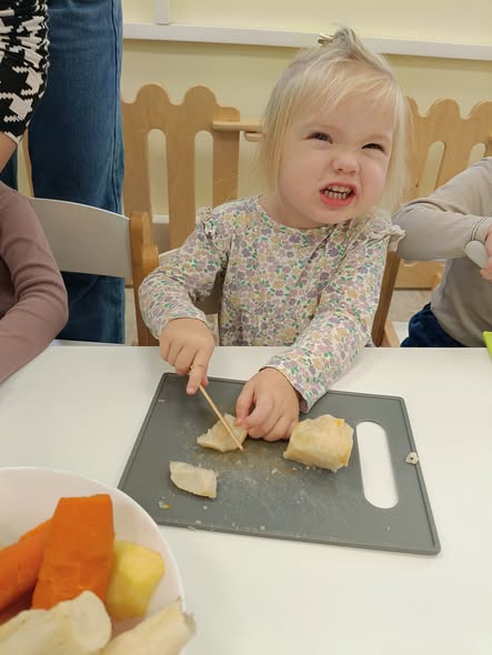 W żłobku Tuptuś ten tydzień był pełen radości, nauki i wspólnej zabawy 😄🎈. Popołudnie spędziliśmy razem z Maluszkami i ich rodzicami, bawiąc się i odkrywając świat podczas zajęć sensorycznych 👶🎨. Tworzyliśmy kolorowe liście na zajęciach plastycznych 🍂🖌️, a podczas hiszpańskiej zabawy uczyliśmy się liczyć – uno, dos, tres. Nie zabrakło też pysznych chwil – przygotowaliśmy smakowitą sałatkę jarzynową 🥕🥔🥒. Na zakończenie tygodnia świętowaliśmy pierwsze urodzinki Łucji 🎂🎁 oraz tańczyliśmy i śpiewaliśmy podczas rytmiki 🎶💃.